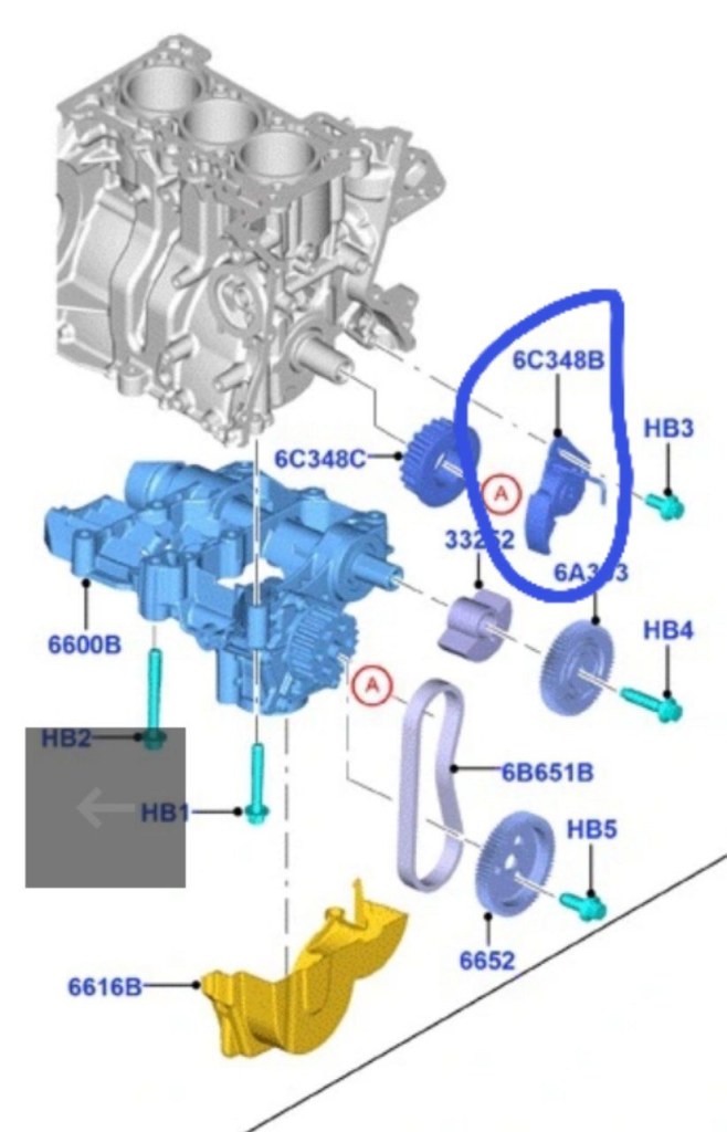 У авто з двигуном EcoBoost 1.0 з класичною гідротрасформаторною АКПП (як правило це 6F15), на відміну від авто з МКПП (механічною коробкою передач), стоять балансирні вали, а сам насос мастила як і його ремінь відрізняються від таких в авто з МКПП.