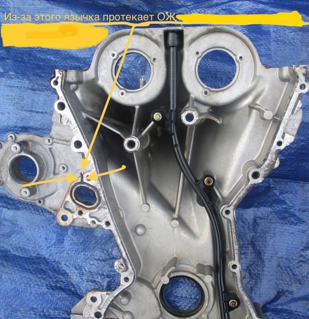 Усувається ця проблема шляхом заміни прокладки на модернізовану без язичка, промазавши при цьому герметиком місце пропилу в кришці ГРМ і навколо прокладки.